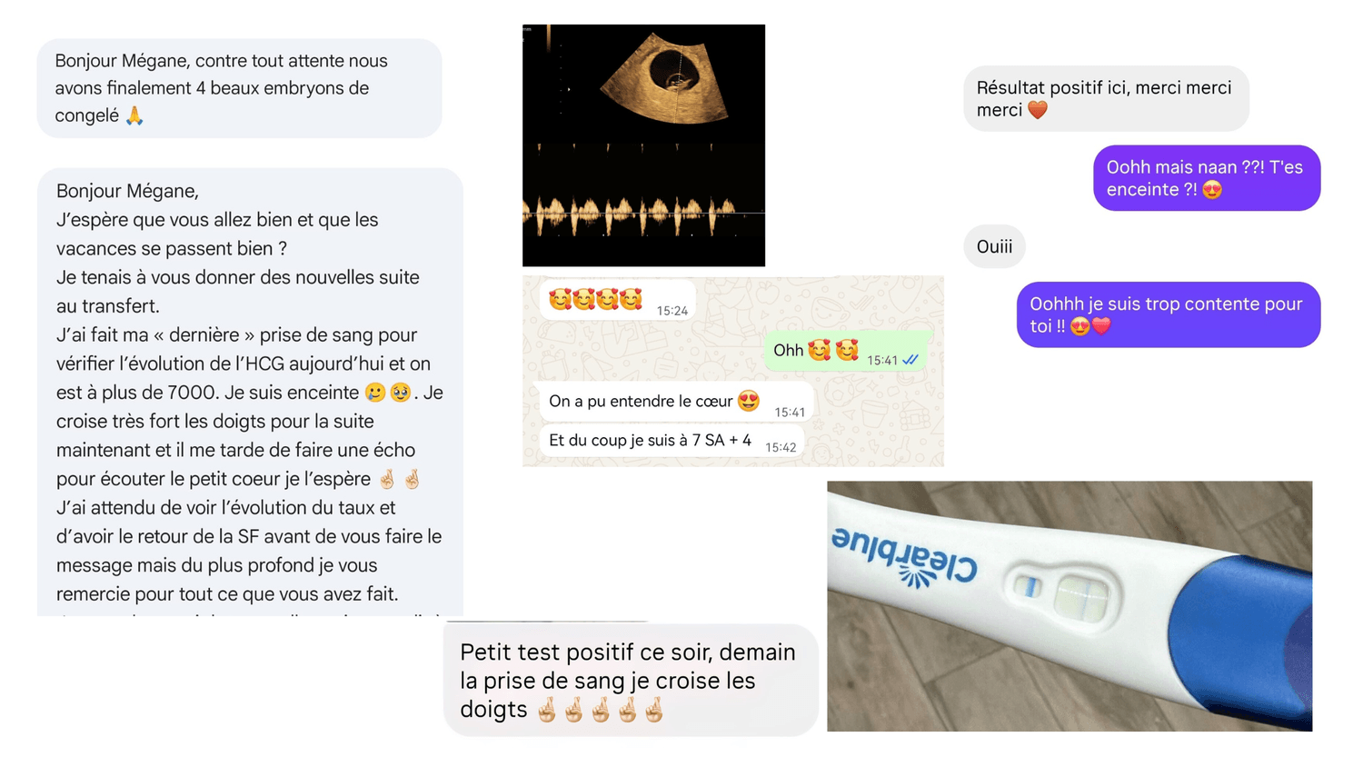 « Merci pour ces échanges, tu es d'une bienveillance qui ferait du bien à toutes les femmes qui passent par cette attente longue et difficile, tu es quelqu'un d'adorable et qui aide énormément, je suis heureuse d'avoir pu faire ta connaissance»